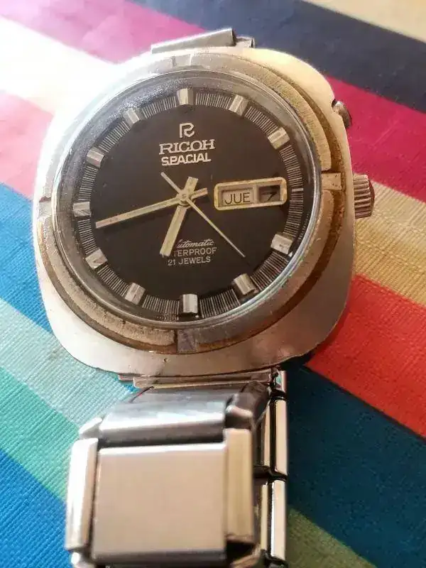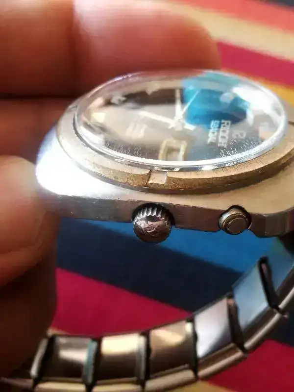 No sé si Ricoh usaba el mismo sistema de referencias en las tapas que Seiko y Citizen, pero si lo hiciera tú pieza se podría datar en junio del 73 o el 78.