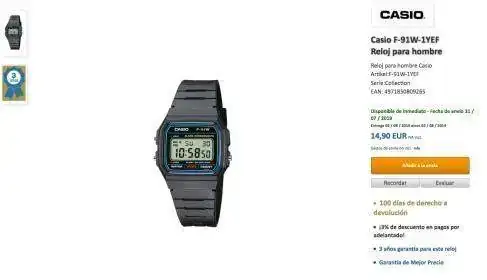 Difícil de conseguir no, es casi imposible, en 4 años de búsqueda solo encontré el mio, ese que tu muestras o el de Amazon o el de muchas webs, es el modelo Japan lo hacen así porque saben que el modelo Japan es el que vende, después te llega el chino pirulo, a día de hoy puedo confirmar, que el mio es la única unidad conservada, con su caja y documentación original de 1989, ya digo a día de hoy, mañana puede aparecer otra unidad, que lo dudo, pero podría ser, en todo este tiempo me encontré muchísima gente que se tiraba el pegote, afirmando que tenía una unidad y a la hora de la verdad, silencio administrativo o resultaba ser un fake, todas las fotos, Wikipedia, YouTube que veas un Japan U F-91W es de mi modelo, queda chulaina decirlo pero es así, y porque tanta admiración por este simple reloj, bueno el mundo del coleccionismo es así, la pieza más escasa y rara, es la más valorada y la más premiada, y porque es un modelo tan raro y valorado por los coleccionistas de Casio de la serie F? Pues por varias razones, una es sin duda la más clara, y es que fue el reloj que utilizaba el grupo terrorista Alqaeda, pero sólo algunos saben que el modelo escogido fue el F-91W fabricado en Japón, si solo ese, el porqué, porque utilizaba el módulo 593 Japonés, un módulo muy sencillo de manipular, descendiente del módulo 587 del F-84 W.