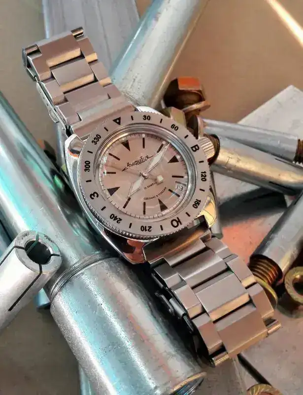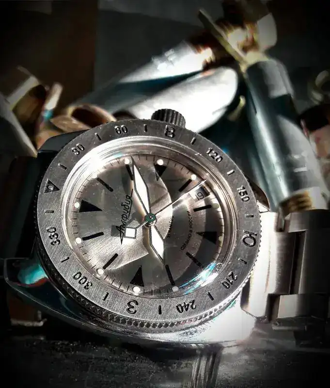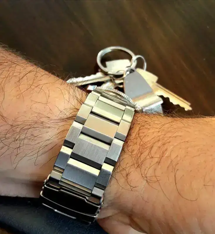 Un reloj transformado por el cambio de bisel del buceo a la orientación, sin más, buscando (y creo que lo he conseguido) a la vez una estética industrial All-Steel, Full-Steel o como se quiera denominar.