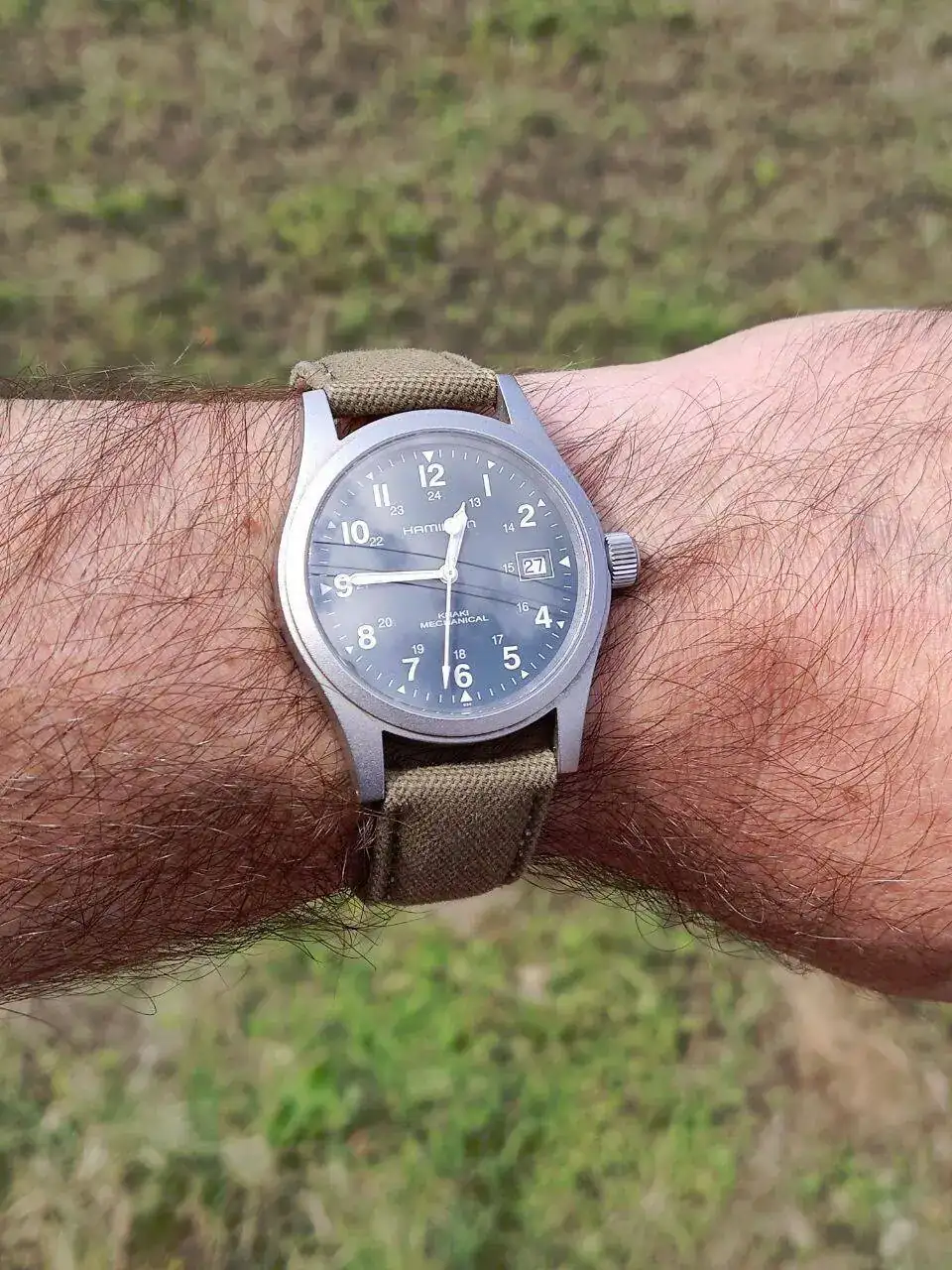 Por poner un ejemplo (mi muñeca es de 18,5) el Hamilton es famoso por sus largas asas (L2L de 47 mm aprox) pero de diámetro contenido, 38 mm.
