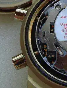 Al abrirlo con la jaxa, nos encontramos con una chapa plateada y circular, doblada al medio creando un efecto muelle entre módulo y tapa trasera, consta de dos lenguetas que se introducen en el módulo y evitan su rotación. Bajo ella está una cojín de goma con los rebajes que podemos encontrar en cualquier otro G, para que las patillas del módulo toquen la tapa y tengamos los pitidos característicos y las alarmas.