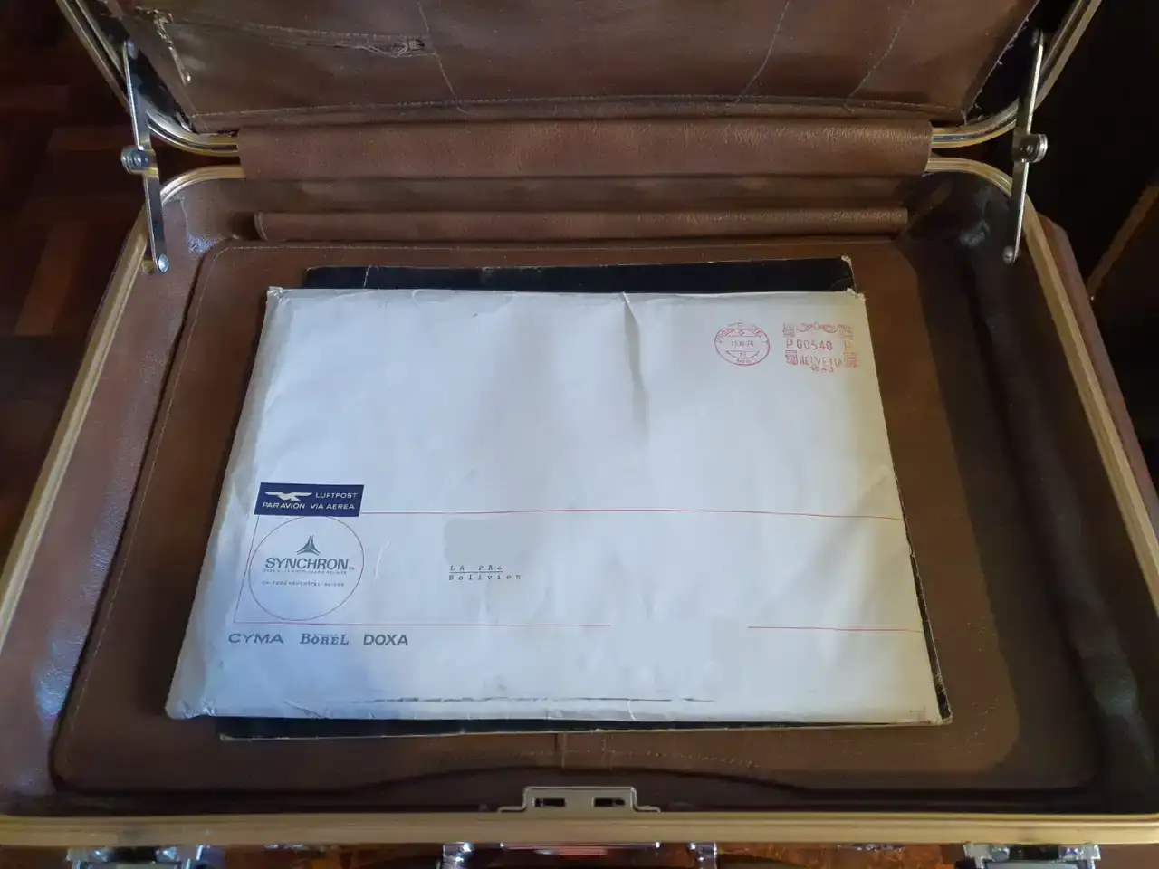 Encontré de inicio un sobre grande con el logo de Synchron que efectivamente contenía dentro, un voluminoso catálogo de época de los relojes del grupo, además de un folleto de vuelo de la extinta línea aérea Braniff. Hasta ahí cumplido todo lo ofrecido por el bueno de Beto.
