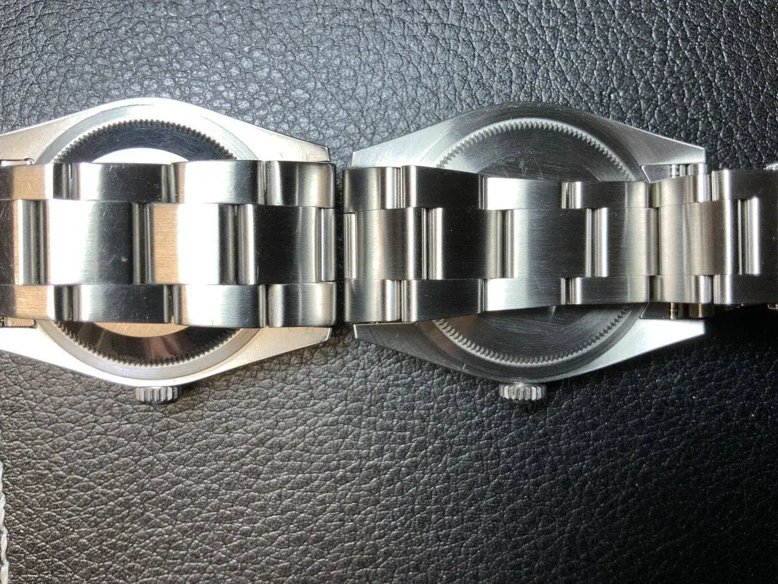 Una de las grandes diferencias, el brazalete. La mejora es brutal, son ya dos generaciones Rolex entre ellos. Creía que me costaría acostumbrarme a la diferencia de anchura y la reducción añadida en el cierre. Pero he tardado solo 30 segundos…😁