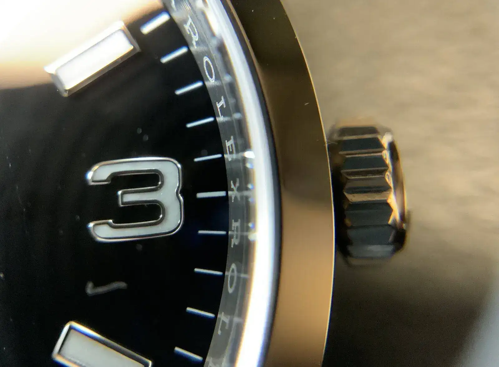 Y para destacar de nuevo los índices, aquí tenéis un macro del 3. Mas allá del tamaño y el lumen, la tampografia en el anterior no estaba correctamente alineada con el índice de oro blanco...imperdonable!!! 😁 Es broma, no soy un talibán, pero deja bien claro el salto adelante que ha dado la marca en cuanto a acabados en los últimos años.