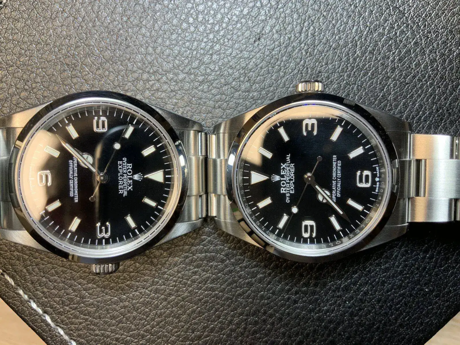 Hace 3 años entró en mi caja mi primer Rolex, un precioso 114270 de 36mm. A mi mini muñeca le quedaba de miedo, y estaba enamorado de él… Hasta que en una de estas, un amigo de otra ciudad me pidió ayuda para ver y negociarle uno igual en Madrid. Finalmente se lo compré, y al llegar a casa y compararlo con el mio descubrí que había caído en un error de novato (aun mas de lo que soy ahora) cuando vi lo pulido que estaba el mío comparado con el que acababa de comprar.