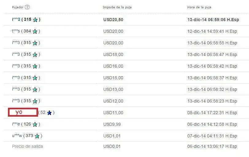 Como soy novato en estos menesteres, ya que era mi segunda puja y el ansia de pujar.... me equivoqué de botón y en lugar de apretar PUJA MÁXIMA, apreté el de PUJA YA... o PUJA ACTUAL.... metiendo los 11$.... cuando me di cuenta ya era tarde... iba a pagar 12e en puja por un reloj que podría comprar a ese mismo precio y sin esperar 5 dias