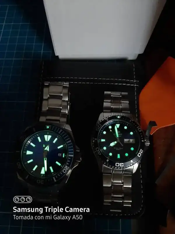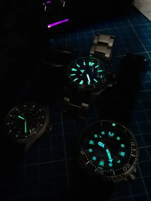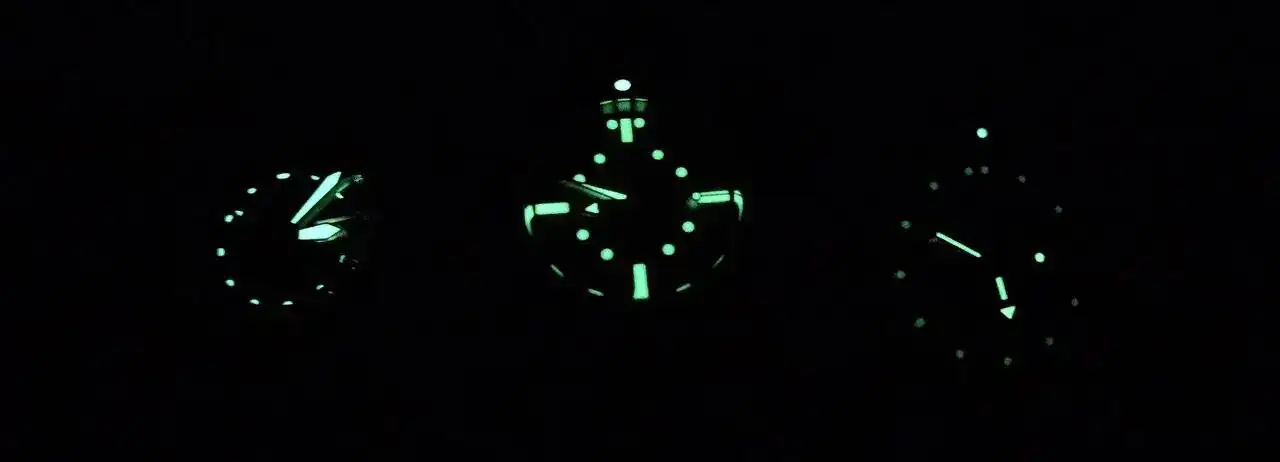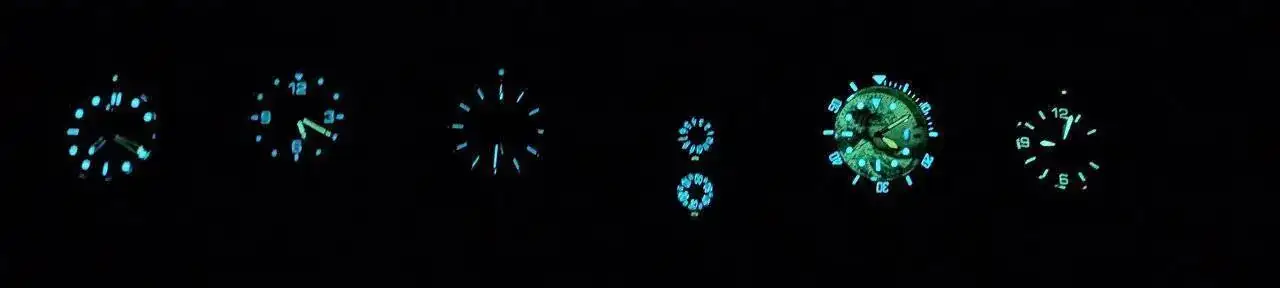 Pues hasta aquí. El resultado del experimento lo que yo más o menos me imaginaba, Steeldive una un lumen de mucha calidad y lo aplican generosamente, ahora bien y si las agujas son verdes no se ve un pimiento. Además las agujas se las cambie yo y es posible que tengan peor lumen que las de serie. Omega tiene el mejor lumen de todos mis relojes, lo cual no sorprende porque es un Seamaster profesional con válvula de helio, si no tuviese un lumen excelente sería un absurdo. Por lo demás Certina podría usar mejor lumen, ya que también es un diver, aunque creo que le penaliza mucho tener poco área pintada, no necesariamente que el lumen sea malo. Que Tandorio y Vostok usan mal lumen lo sabíamos ya todos y grata sorpresa los japoneses de Orient y Seiko que son ambos gama baja pero cumplen