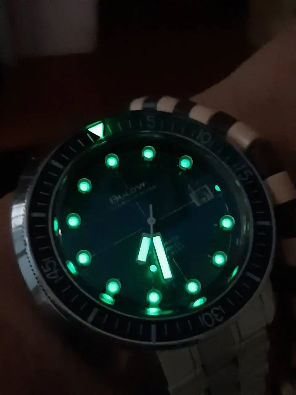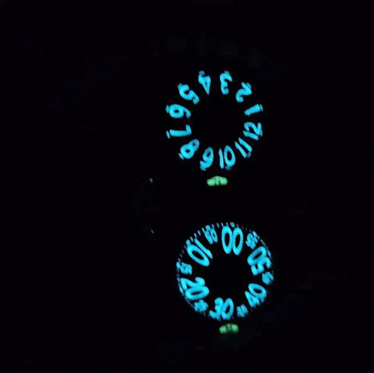 Este es el Omega Seamaster. En vivo puedo decir que es el mejor lumen aunque prácticamente igual que el del Steeldive. Lo que sí se puede decir es que tiene una intensidad espectacular.
