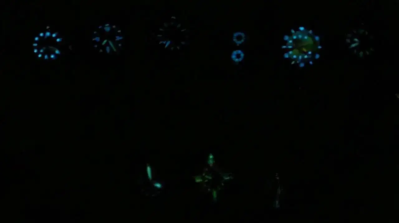 Después los relojes se han puesto en estuches con tapa para que no tengan mayor estímulo de luz, simulando así condiciones de nocturnidad. En las fotos de arriba veis como estaban los relojes tras exponerlos a la luz.