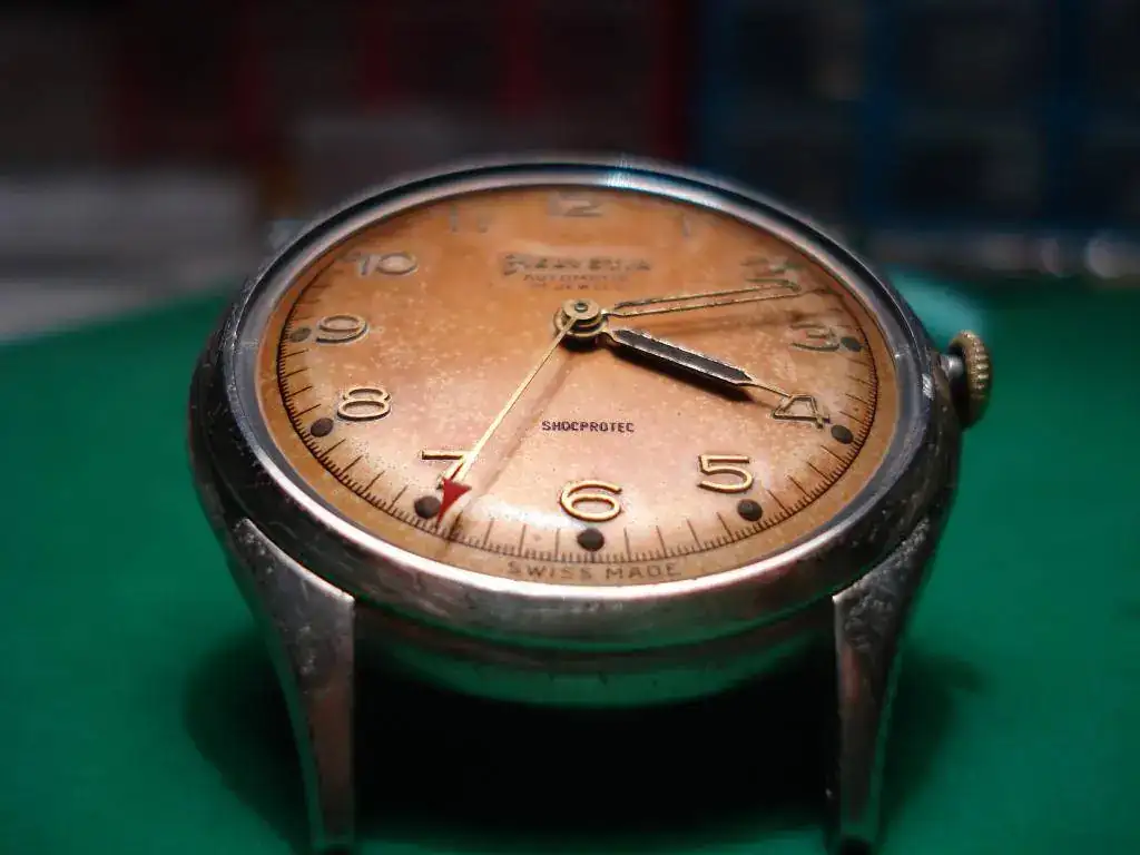 Y ya vestido, a falta de plexi nuevo. A las agujas les quité un poco el óxido y a la de minutos al cogerla, se le desprendió bastante del relleno y yo le quité el resto, porque si no estaba muy feo...