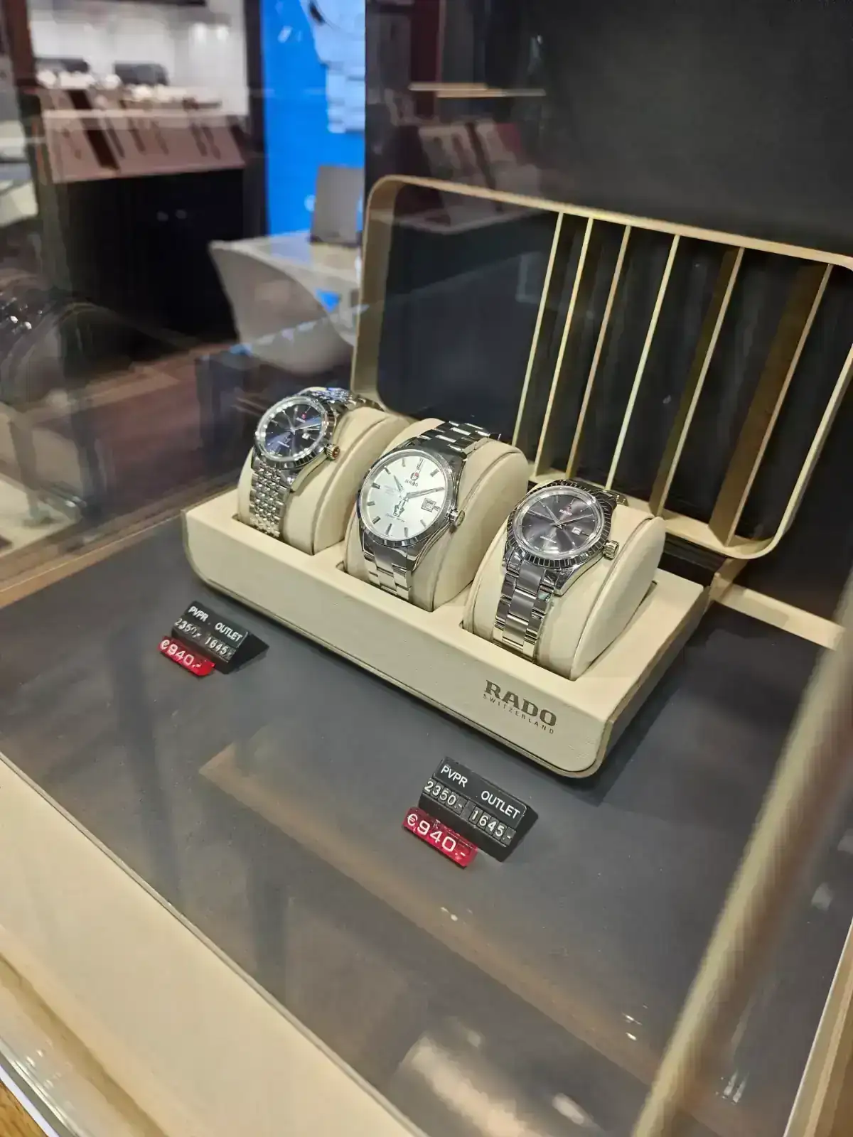Los dos relojes de los extremos son relojes Rado Golden Horse "de mujer", me explico, asi los venden, pero son 35 mm y me parecen una oportunidad porque si tienen ese descuento es precisamente por ser "de mujer" pero en mi opinión son unisex por estética.