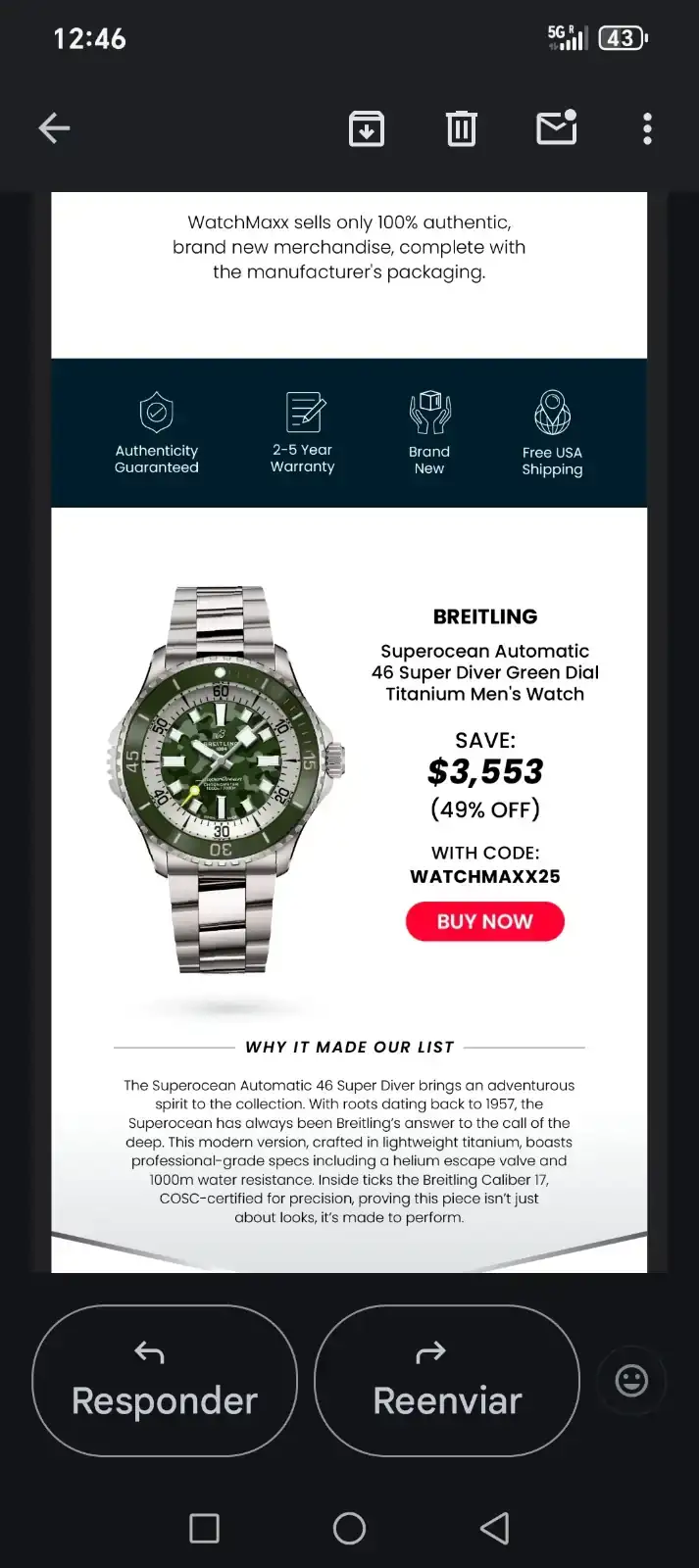 Me parece mucho mejor centrar el hilo en compartir ofertas que llenarlo de reflexiones, opiniones o preguntas acerca de la fiabilidad como tienda de WatchMaxx.Siempre puedes encontrar a alguien que viva allí y te eche un cable