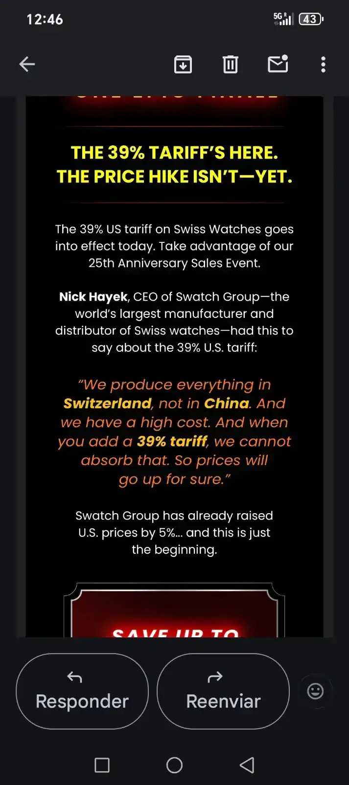 Recado incluido del ceo del grupo swatch (no pretendo abrir una discusión, que conste)