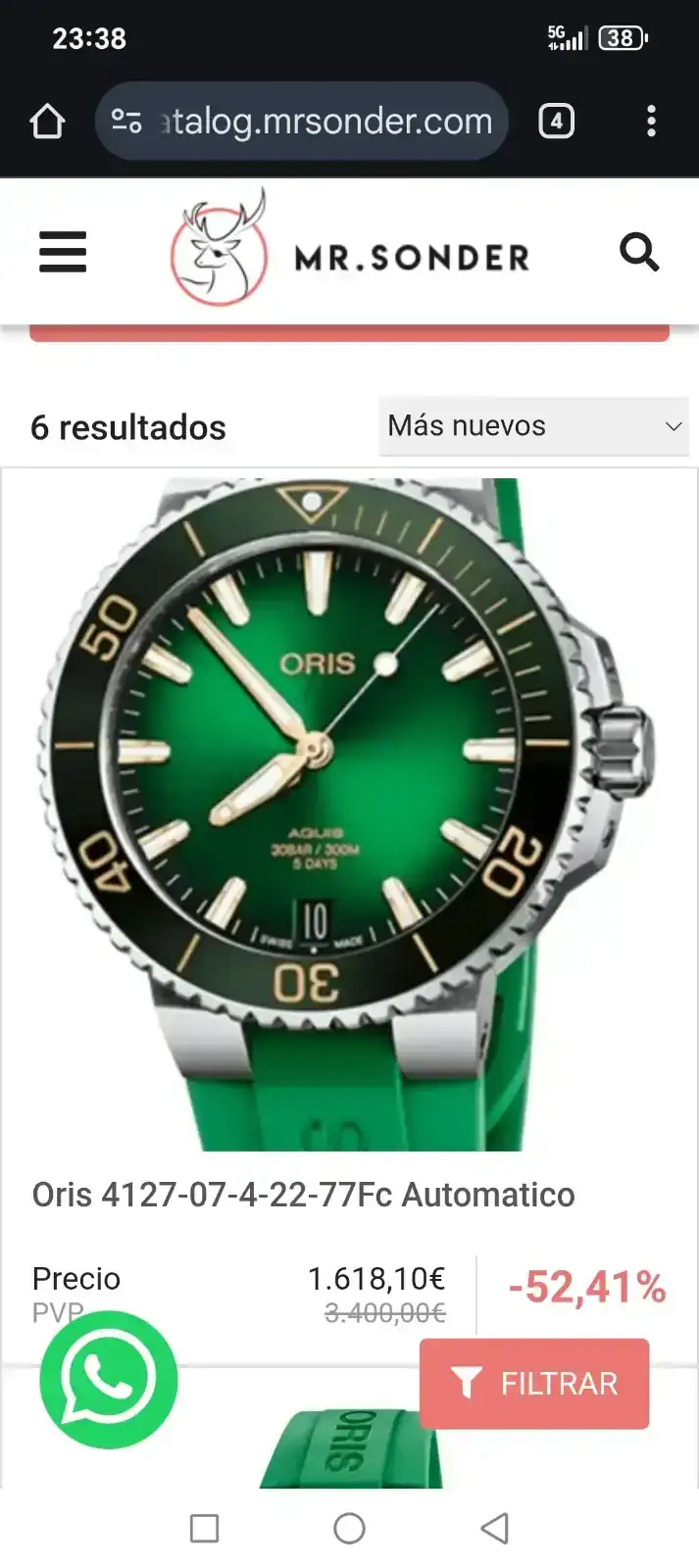 Oris 4157-07-4-22-74Fc Automatico 1618 euros, 52% de descuento