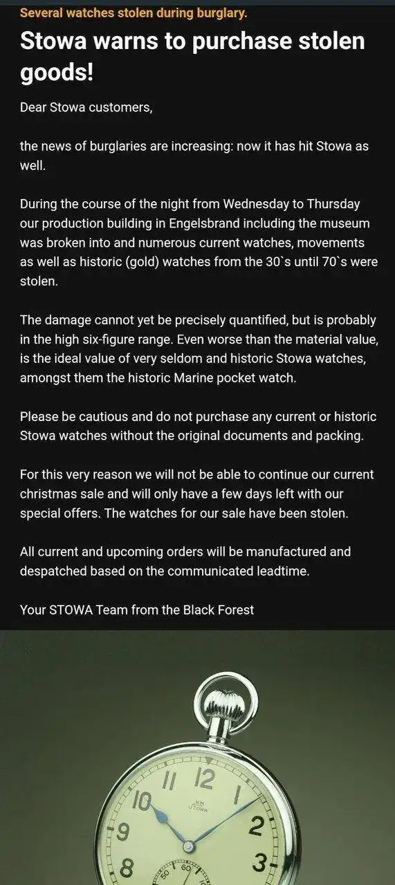 Debido a un robo en el museo y planta de producción de STOWA, la sección de ofertas navidades finalizarà próximamente.
