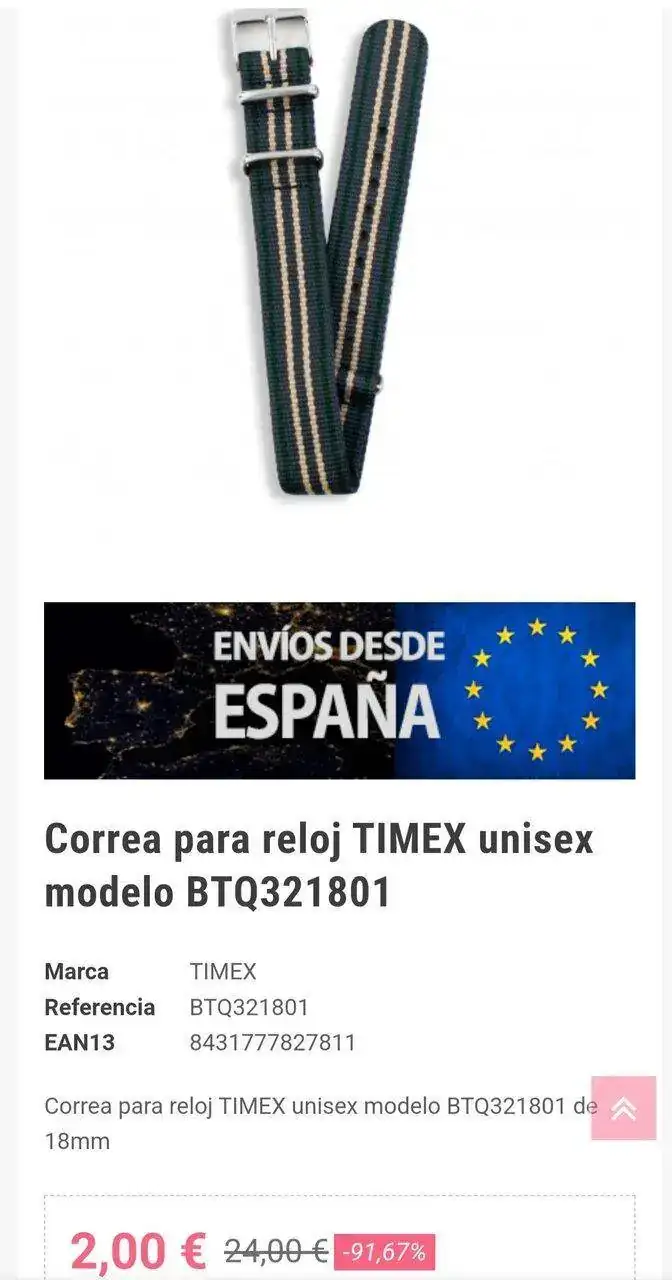 He encontrado muy interesante el precio de las correas TIMEX. Por 2€ hay bastante variedad de nato, single-pass, velcro y zulú (de 18mm y de 20mm) que pueden ser muy útiles en alguno de nuestros relojes.