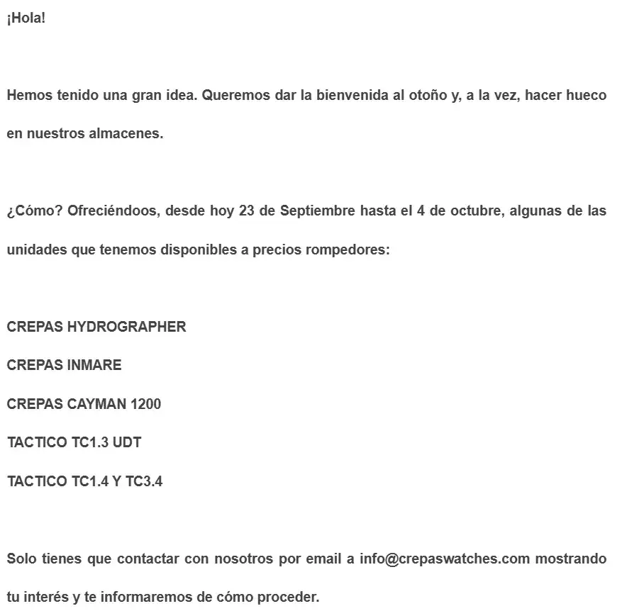 Lo comento porque las ofertas que se publican en este hilo son de relojes nuevos. Generalmente, de web propias de cada marca o de distribuidores oficiales. Las ofertas son de caracter público, a través de internet, redes sociales o un escaparate.