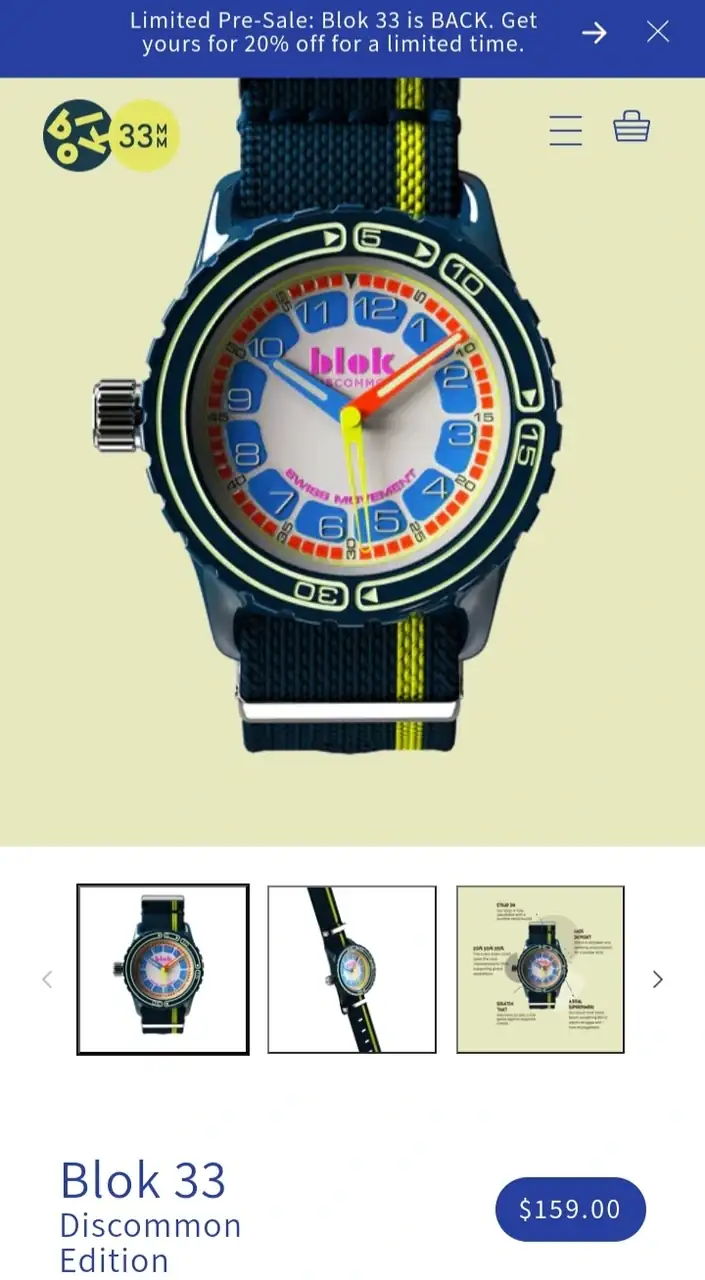 No conocia estos relojes, que graciosos son!La gama 33 de los relojes BLOK sigue estando disponible con un 20% de descuento.
