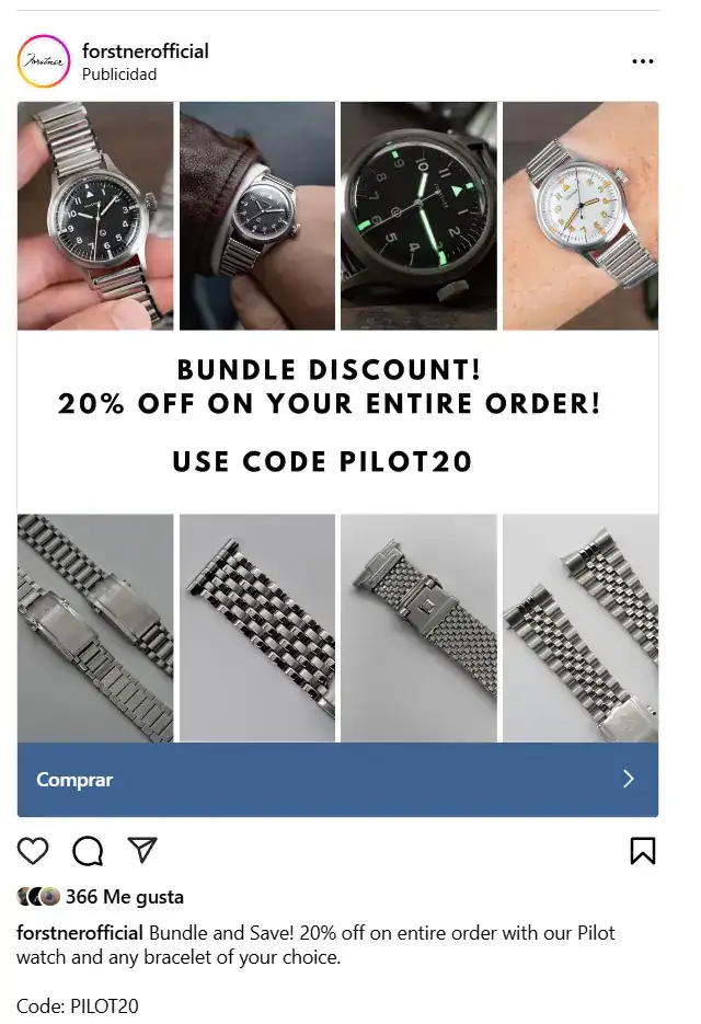 No sé si se trata de la misma oferta que llevo viendo hace meses. Si es así, el descuento del 20% en brazaletes te lo aplican con ese código (PILOT20) siempre y cuando se compre el reloj pilot (negro o blanco) el cual es estupendo como alternativa a los IWC o JLC de aquella época.