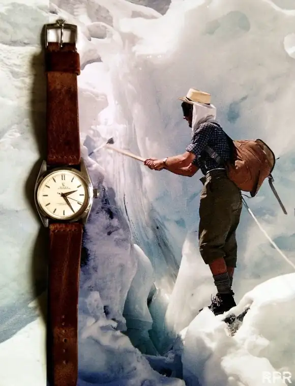 Hablando se Sir Edmund, hace poco topé con el Oyster Perpetual de Charles Evans, compañero de Hillary en el 53. Según la literatura montañera sobre la expedición del 53, el primer grupo de asalto, Evans y Bourdillon, pudieron haber sido los que coronaran cima de no ser por ciertos problemas que les dio el equipo de oxígeno. En realidad tenían dos sistemas de oxígeno (el experto y testador era Bourdillon) y en el primer asalto el equipo que usaron se reveló el menos adecuado. Esto dio paso a que Hillary y Tenzing, beneficiándose de la prueba de sus compañeros (era una labor de equipo y no la gloria de una persona) usaran el sistema de oxígeno más adecuado y lograran cima en el segundo asalto tres días después (se planearon tres asaltos posibles). Sea como fuere, Evans y Bourdillon llegaron nada menos que a la antecima o cima sur a 8749 m, lo más alto que había estado un humano (las expediciones anteriores solían petar a los 8400 y en el 53 solo se había escalado un ochomil, el Annapurna, con un gran costo de dedos amputados). Y con ellos sus Rolex OP. En las fotos se ve mucho a Evans con su inseparable OP. Incluso picando hielo y tallando escalones con el piolet, si eso no es un uso Cuco y extremo de un reloj que baje Zeus y lo vea. Cima hizo Smiths, pero los Rolex aguantaron una tralla fina.