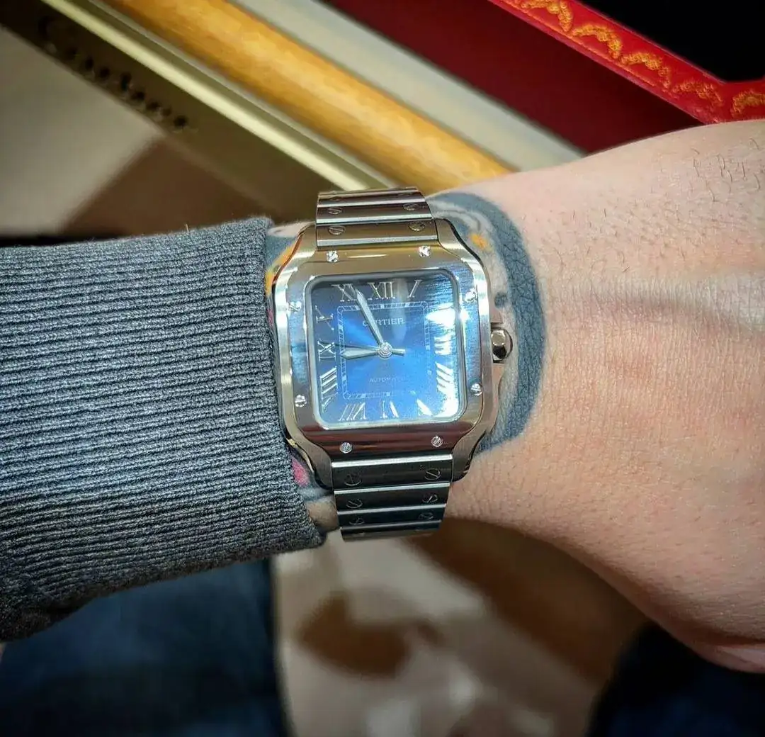 En cuadrado creo que 37 se me haría grande, además en el Santos me gusta que cobre más protagonismo el brazalete.Yo llevo mucho detrás, pero el tamaño es lo que realmente no me termina de convencer, 40 y 35 me sigue haciendo falta un 37.