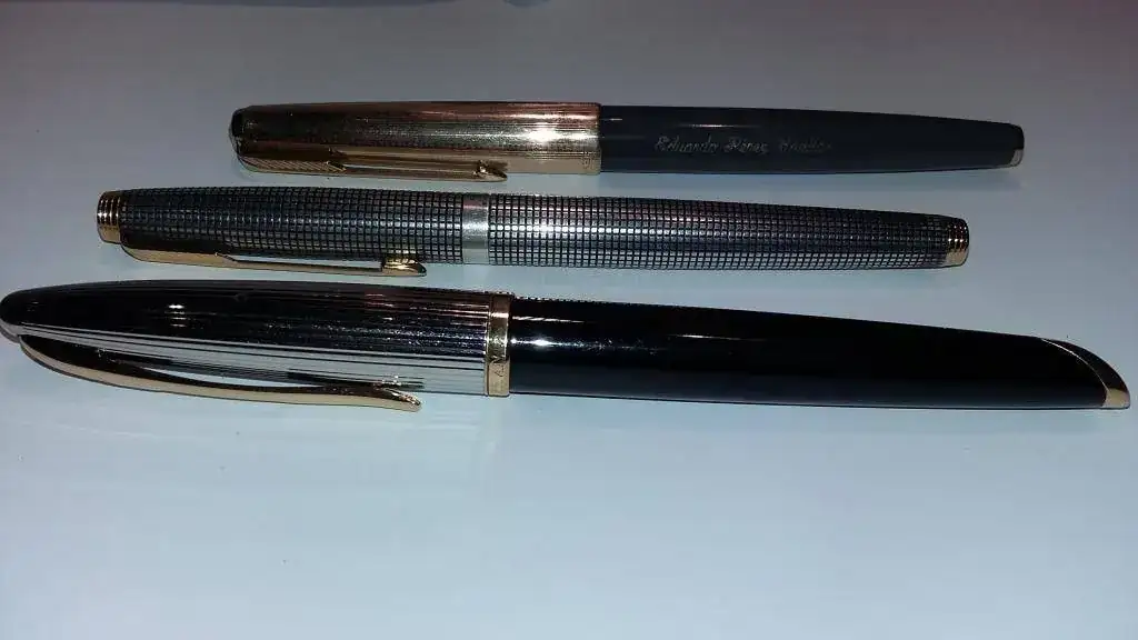 De delante para atrás, Una Waterman Carene, un P75 Ciselé de los 70 y una P61 con cargador por capilaridad.