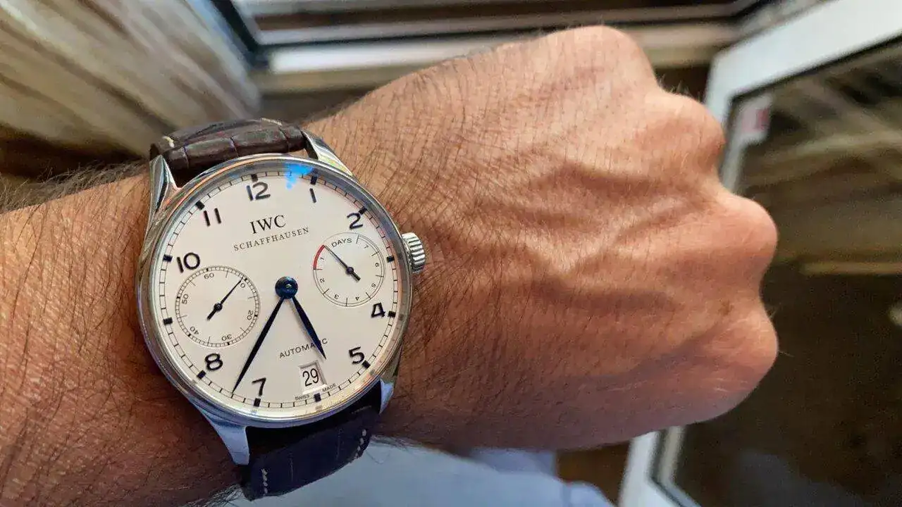 IWC Portugués 7 días lo tuve en blanco, después en negro ambos con 44 rubíes y finalmente lo conseguí en blanco con 42 rubíes, con el calibre mejorado. Y ese ya no sale de la colección.