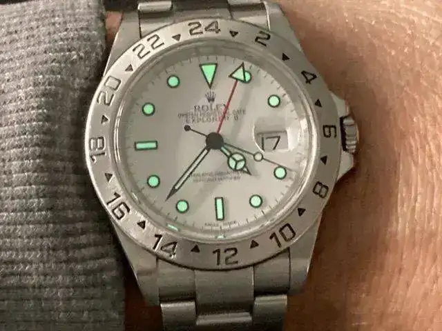 Como somos de fiebres y de listas de espera este reloj ha estado muchos años por ahí casi dando tumbos, con poca atención por parte de la gente. No hay más que ver a que precios se vendian de segunda mano cuando la fiebre eran los GMT. Reloj, super cómodo ( para mi gusto también de tamaño) , igualmente GMT, con su xxx antigolpes y encima con la posibilidad de cambiar la esfera (aunque, el blanco era mi favorito). Cuando regalé el mío ( como premio de fin de carrera) lo pasé antes por el SAT de Serrano, y como le cambiaron además el bisel, al regalarlo con su caja completa parecía nuevo, Así como no hecho en falta el GMT si lo hago con éste.Pues estoy de acuerdo en todo lo que dices ,tengo el explorer 2 y es súper cómodo como dices y también con cyclops 🤣, estoy acostumbrado a el !
