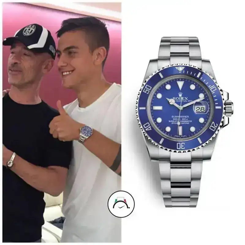 El jugador Paulo Dybala de la Juve y un Rolex Pitufo