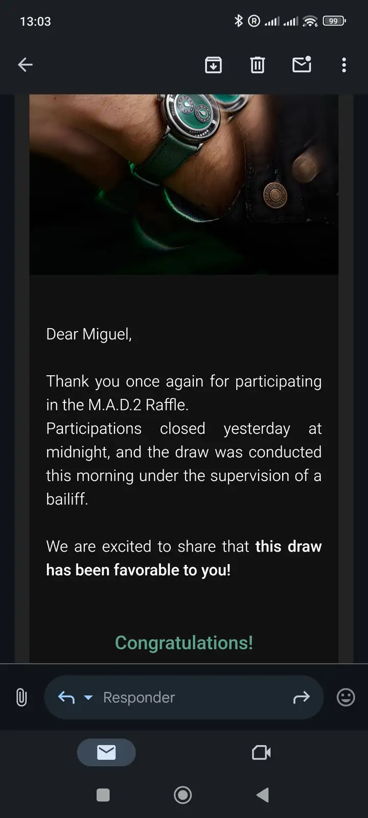 A los que les ha tocado, enhorabuena porque es una excelente oportunidad de tener un reloj firmado por MB&F.