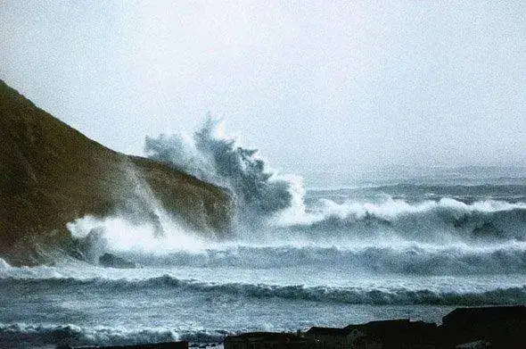 Foto de Feb.1986, olas de 30m y rebentación a 60m