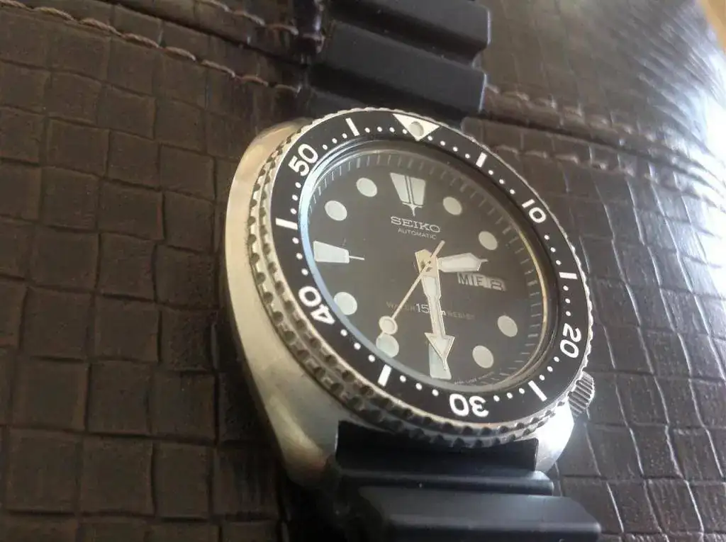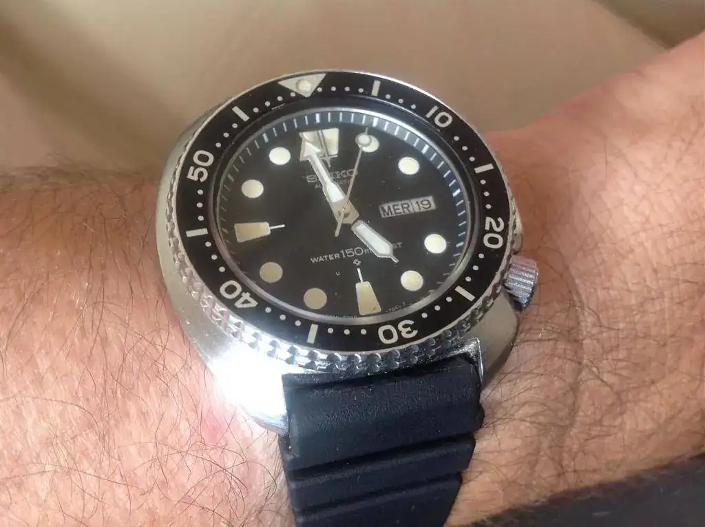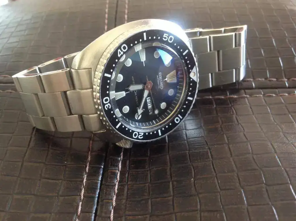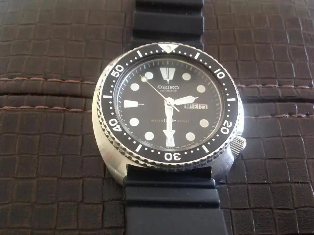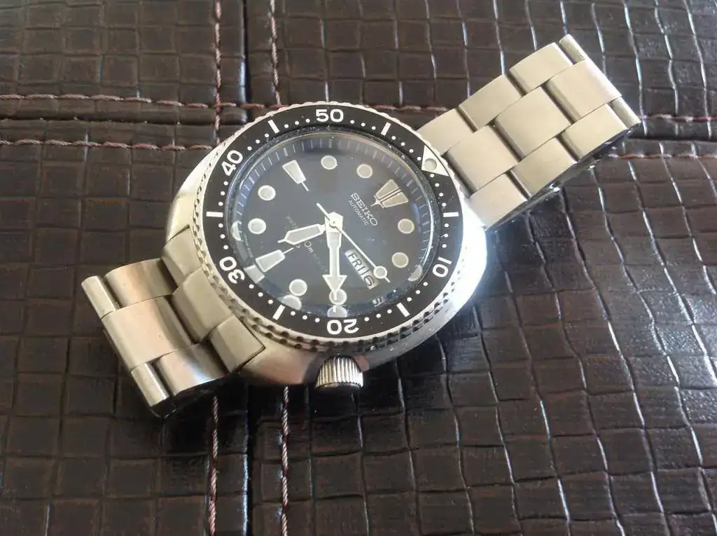 el cual salvo por la posición de la corona es clavao al Seiko Turtle Padi .