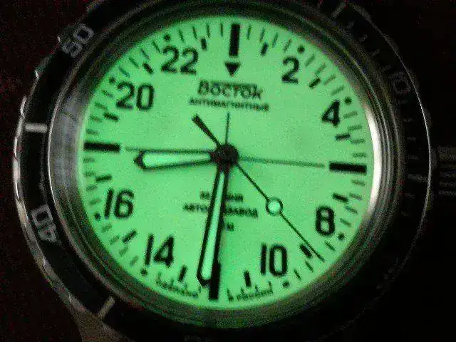 Calibre 2431.01, 200 m., cristal de... plexiglas, precioso color crema del dial, acero inoxidable, 39 mm de diámetro, 15 mm de grosor, 46 mm entre asas, correa de silicona... Y 24 horas! he tenido que pensar un poco para ponerlo en hora, pero no creo que tarde mucho en acostumbrarme a ver la hora.
