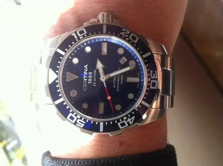 El otro día me enamore, estaba paseando por el Corte Ingles y lo vi..... con un azul resplandeciente que me dejo descolocado, la verdad es que en ese color no lo habia visto nunca y después de 2 noches pensando en el me decidí y lo compre. La verdad es que roto mucho mis relojes pero después de 10 días todavia no me lo he quitado olviadando a los Rolex, Pam y demás, espero quenos guste tanto como a mí, mi Certina DS Action....