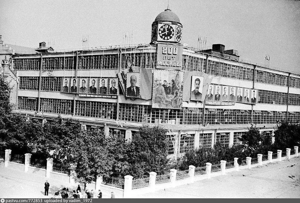 Las instalaciones de la 1ª Fábrica Estatal de Relojes en 1947. Fotografía: www.pastvu.com