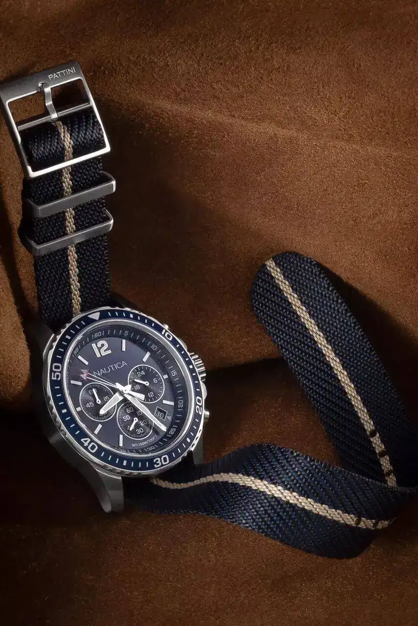 - El color. azul marino intenso con toques beige/dorados.