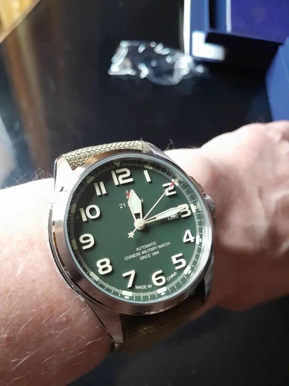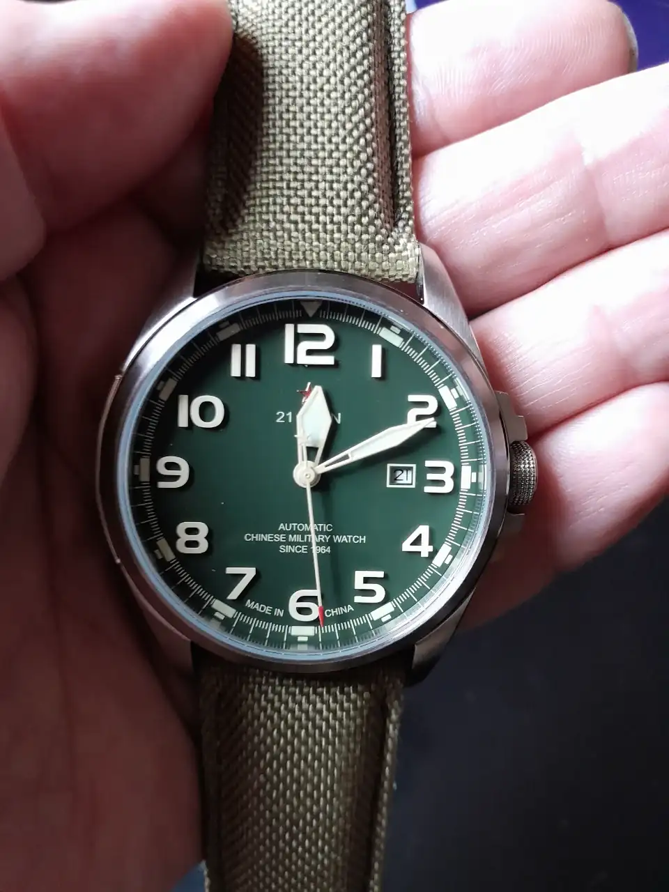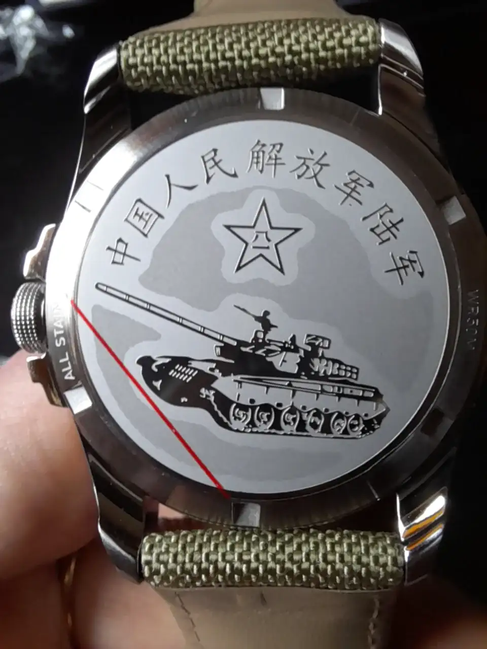 El fabricante lo vende como reloj oficial del ejército chino desde 1964. Tiene 43 mm. de diámetro, es grande, y parece más dado que no tiene bisel diver.