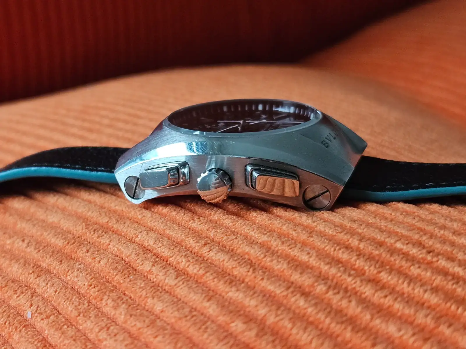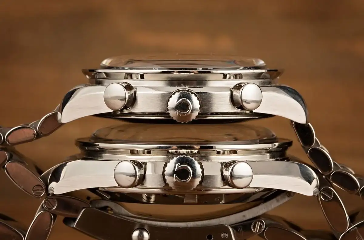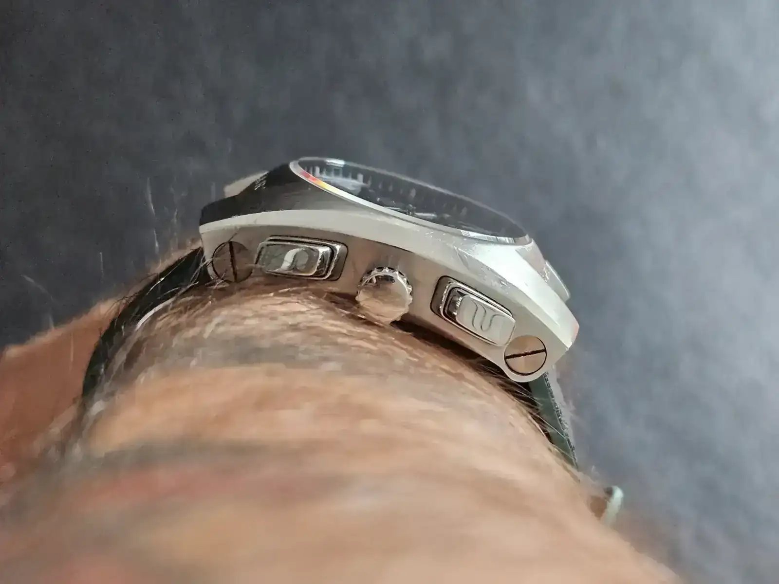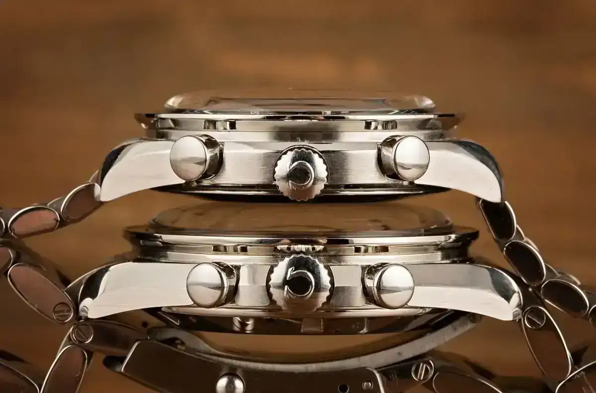 Como el módulo cronografico va montado encima de un excelente 2892, los pulsadores y la corona quedan en diferentes alturas. Esto es algo que se ve más claro en los speedmaster reduced