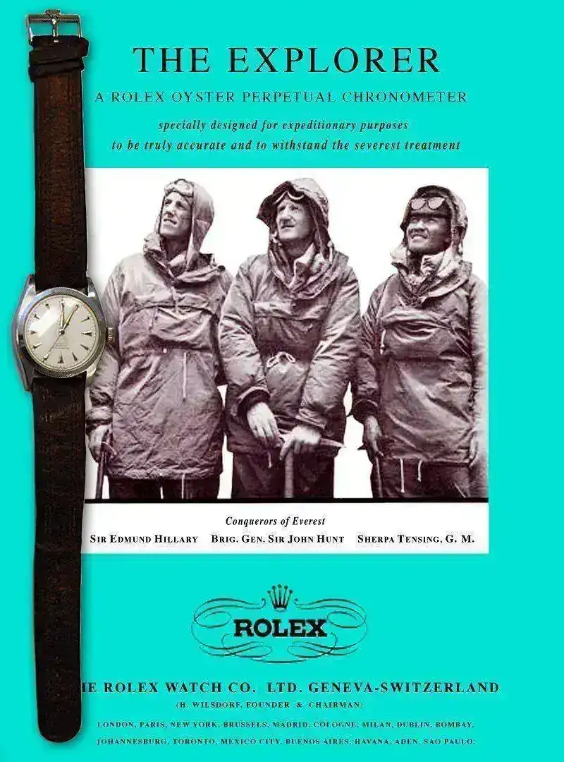 Rolex es indudablemente la marca mas conocida del mundo, y una de las cosas que más gente sabe sobre Rolex es que, uno de sus relojes, fue llevado por los alpinistas que hicieron cumbre en el Everest en 1953. Rolex es muy consciente de ello y quizás por esto ha sido siempre muy cuidadosa al emplear sus palabras en los anuncios publicitarios, para decir que estuvieron en el Everest pero sin mencionar expresamente la cumbre.