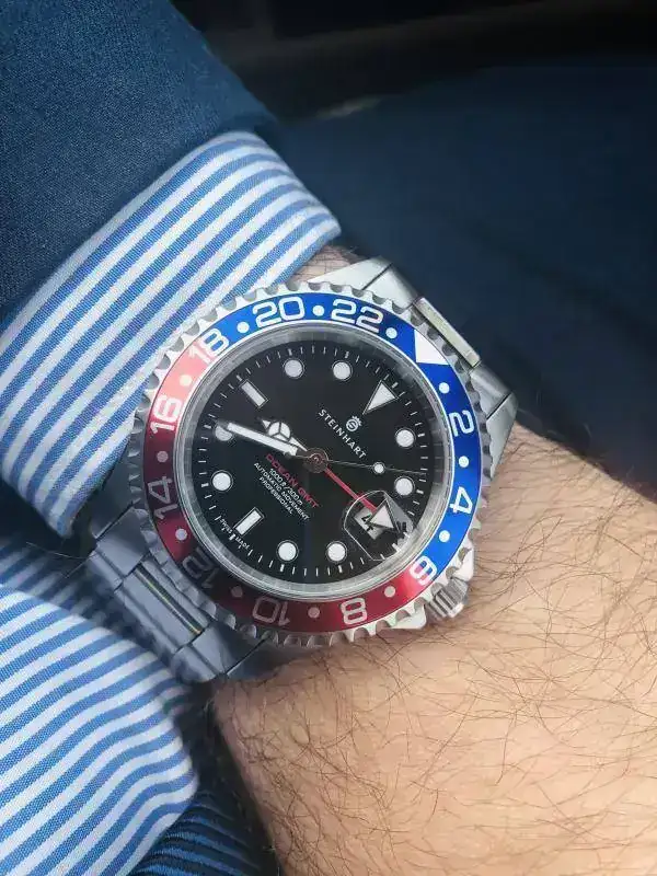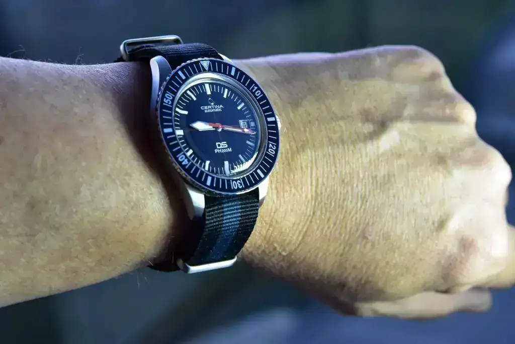 Me gusta mas con la nato que con esa correa de piel con un color que mo le favorece nada.