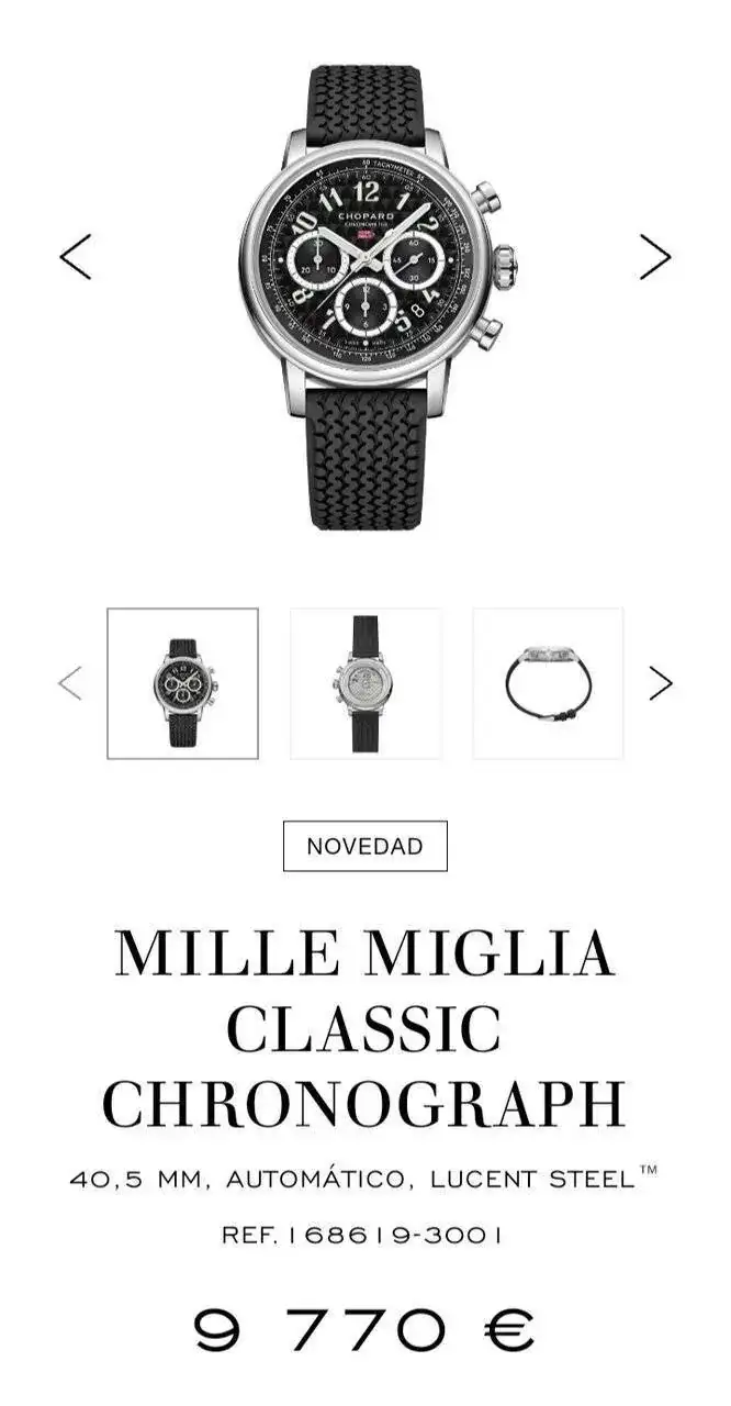 Siempre me ha gustado el modelo Chrono Mille Miglia de Chopard. Y tanto me gustó que lo llegue a repetir en numerosas ocasiones, hasta 5 veces que yo recuerde...