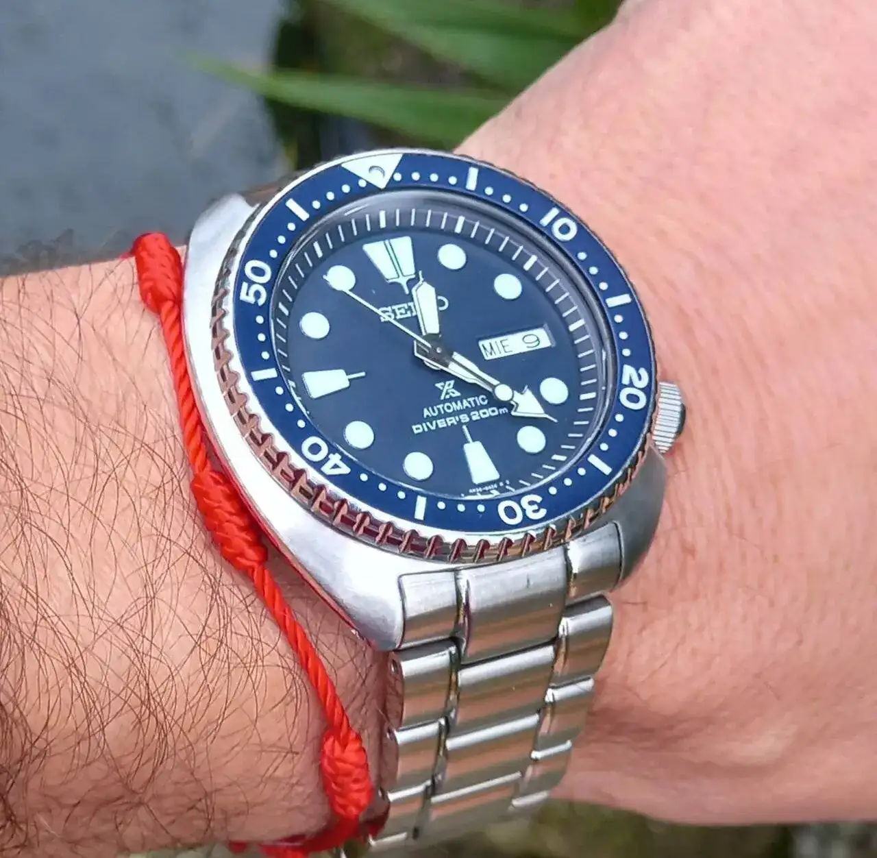 Excelente joya. Única recomendación, la pulserita va debajo del reloj. (Dicen que da suerte y es más estético) aunque al final uno se la pone donde lo haga feliz a uno. Bendiciones Bro.