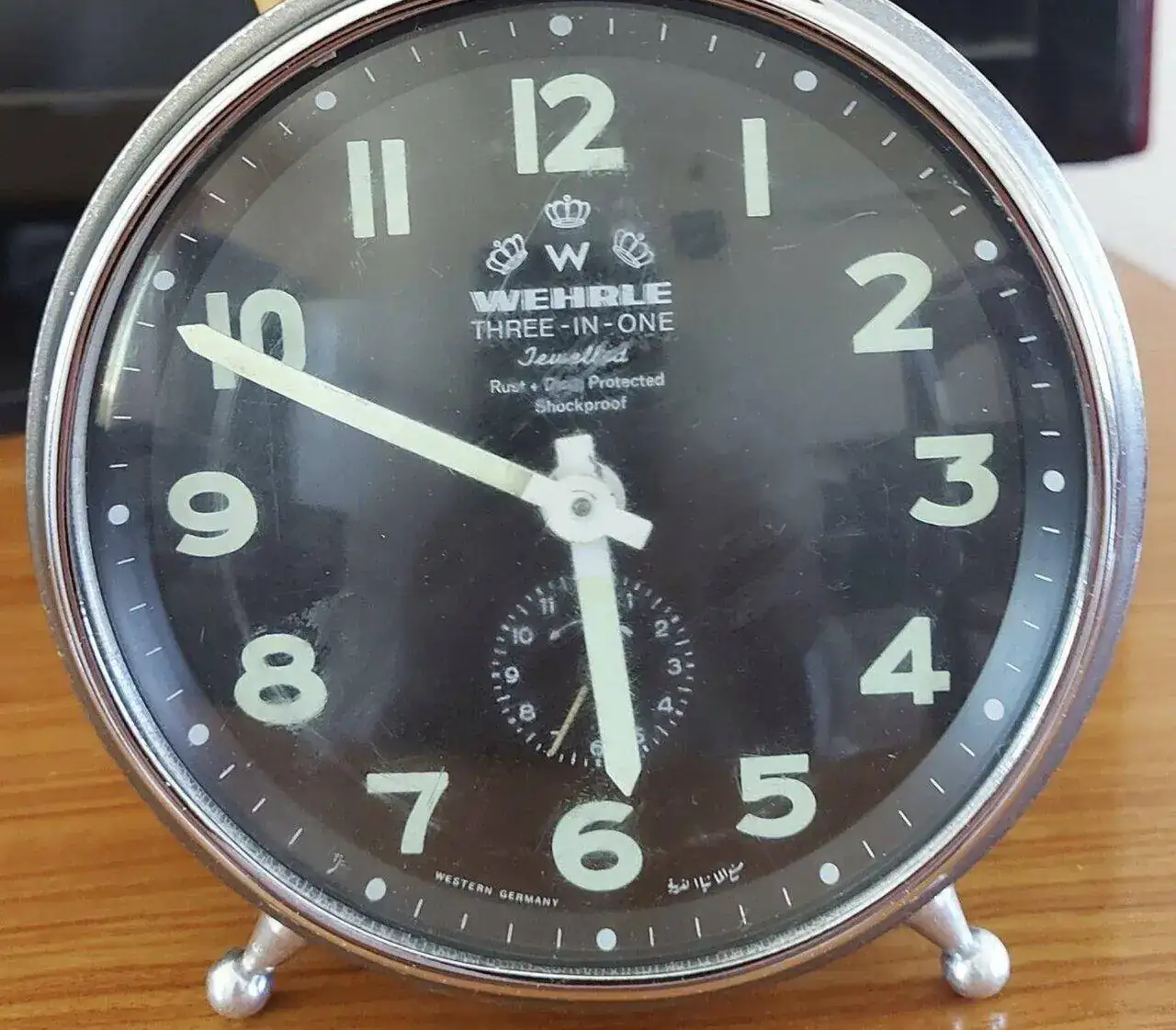 Sabemos seguro que tu despertador es anterior a 1973, porque en 1973 salió una normativa que exigía que todos los productos fabricados en la RFA, para diferenciarlos de los de la RDA, se marcaran como “Made in West Germany“ o “Western Germany “, por lo que sólo podría ser de tritio o de radio, y la luminiscencia en un reloj de tritio sólo podÍa durar unos 15 años. Si hubiera sido posterior a 1973, por normativa, sólo podría haber sido de tritio, porque la luminova no se empieza a utilizar hasta después de la reunificación.