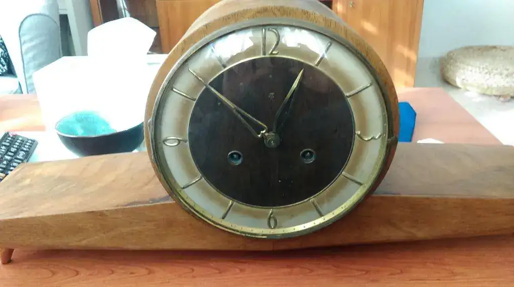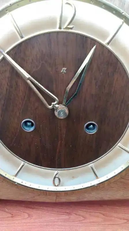 Buenos días, compañeros. Necesito vuestra ayuda. Hoy me han dado un reloj de mesa alemán que heredé de mis abuelos que vivieron en Alemania. Es un reloj de mesa que sólo tiene como marca una pequeña eñe gótica. Alguien sabe qué reloj es? Fijándonos bien parece que le faltan letras a la marca. Podría ser un Junghans?Gracias por vuestra ayuda.