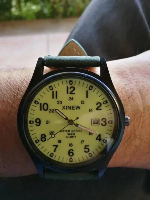 Cuándo vi este reloj, me acordé de alguna reseña a los relojes "MVMT" y qué podrías comprar el mismo reloj por 3€ en china. Y... ciertamente no son lo mismo. Las calidades son pésimas, no se puede pedir más por el precio que tiene, pero aún así mosquea que venga arañado "de fábrica", si hubiese venido sin daños sería mínimamente recomendable... En fin, que aunque por el precio no haya muchas mejores opciones, no tiene sentido gastarse tan poco. Mucho mejor un Casio, vaya. Lo bueno es que la pila que tiene es una 377 que se puede aprovechar para otros relojes y puedo usarlo para prácticar (estoy en proceso de restaurar un reloj de mi padre, ya lo presentaré...)