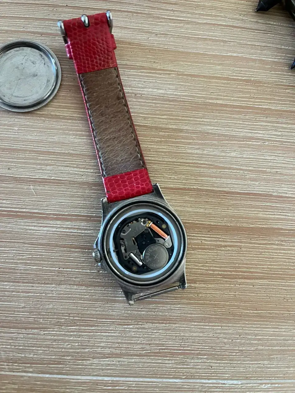 El caso es que yo estaba convencido de que el reloj seguía en posesión de mi madre y después de años preguntándole que donde estaba el reloj…hace poco mi mujer abrió un joyero y ahí estaba con una correa roja bastante deteriorada y sin pila.