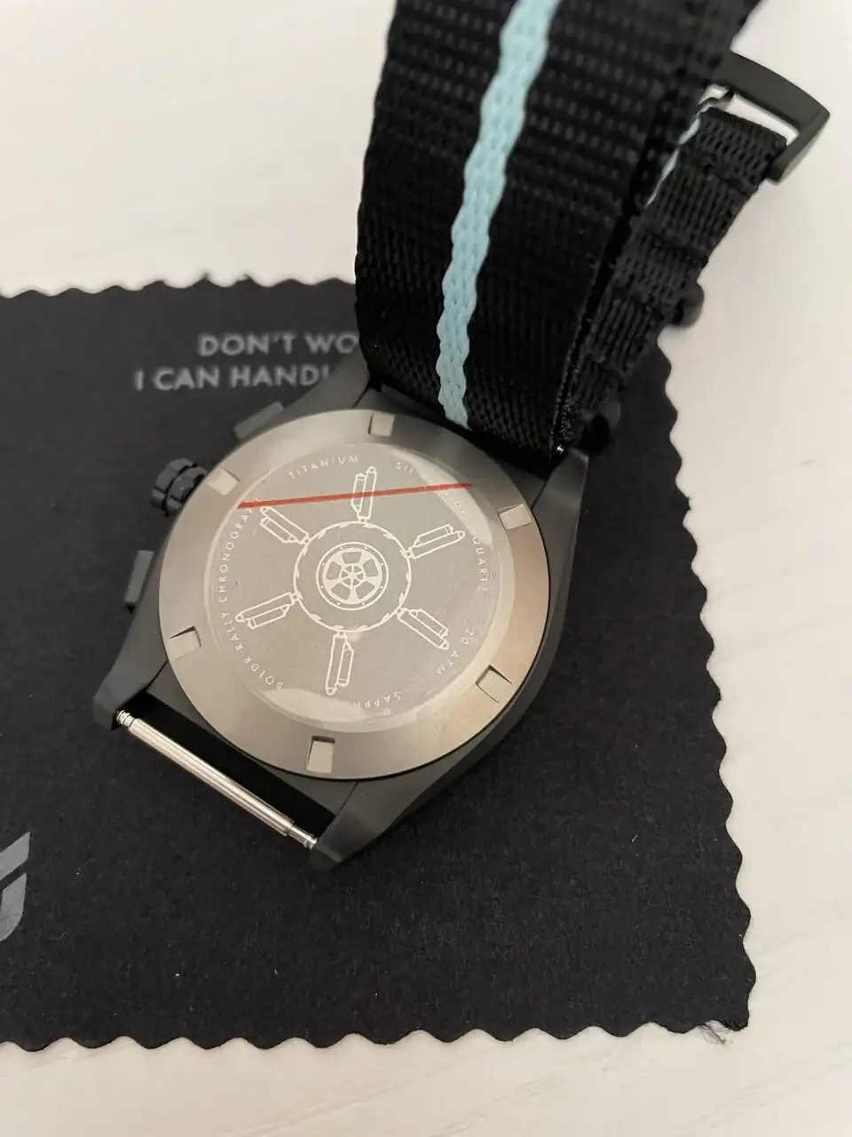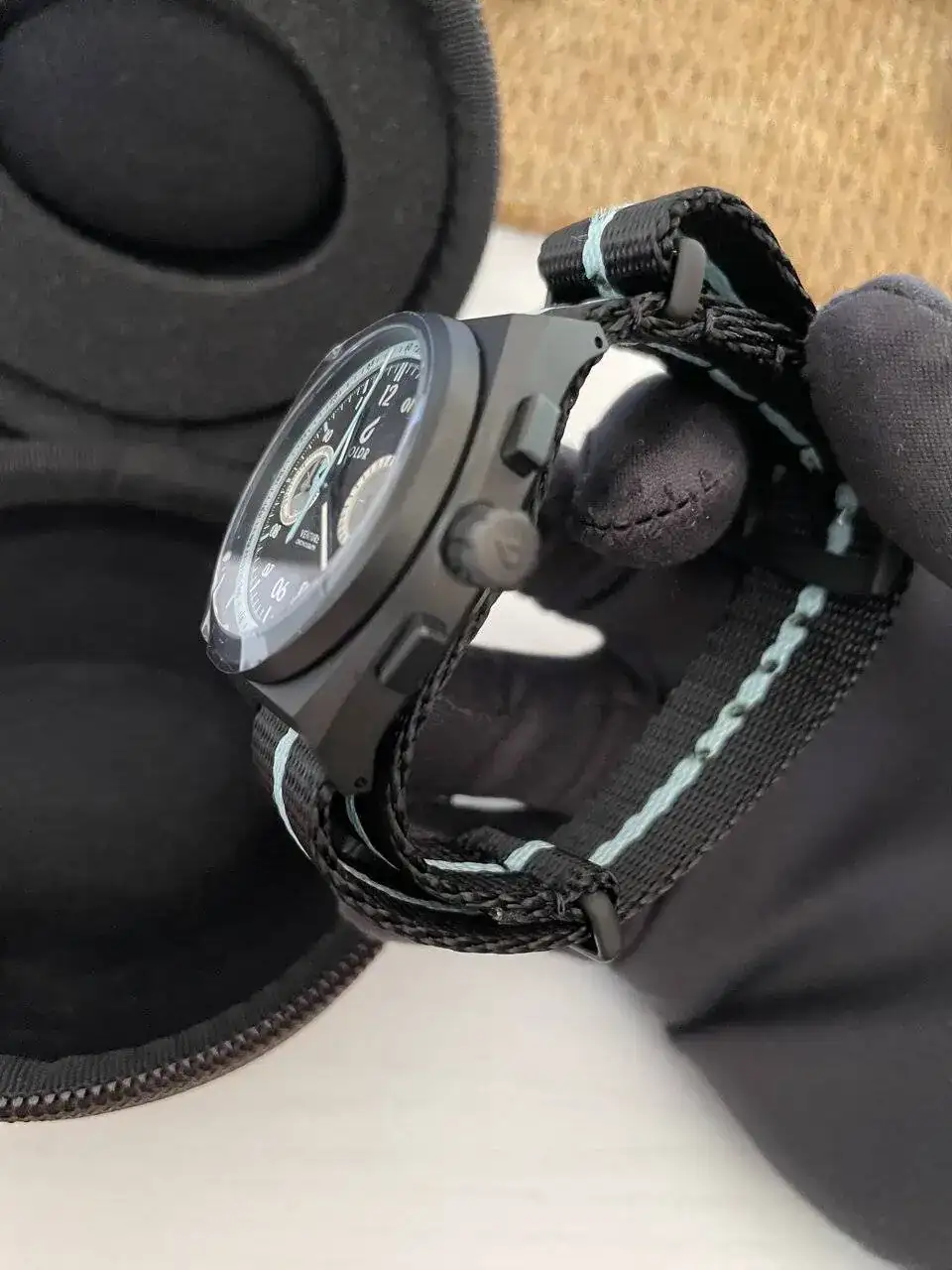 Aunque me había asegurado que podía realizar devolución sino era lo que esperaba estaba bastante intranquilo de que no me convenciera y ha sido todo lo contrario me ha encantado, para el precio que tiene 280,95€ + aduanas o 319€ en serious watch, es un reloj de titanio muy bien trabajado con muy buenos acabados, muy ligero, el meca quarz le da un barrido muy continuo a la segundera del crono que mola bastante, si tuviera que ponerle un pero sería la nato la veo un poco flojilla de calidad aunque no tiene importancia ya que cuando lo pedí ya estaba mirando correas ya que no soy muy de natos, al menos de una sola pieza.
