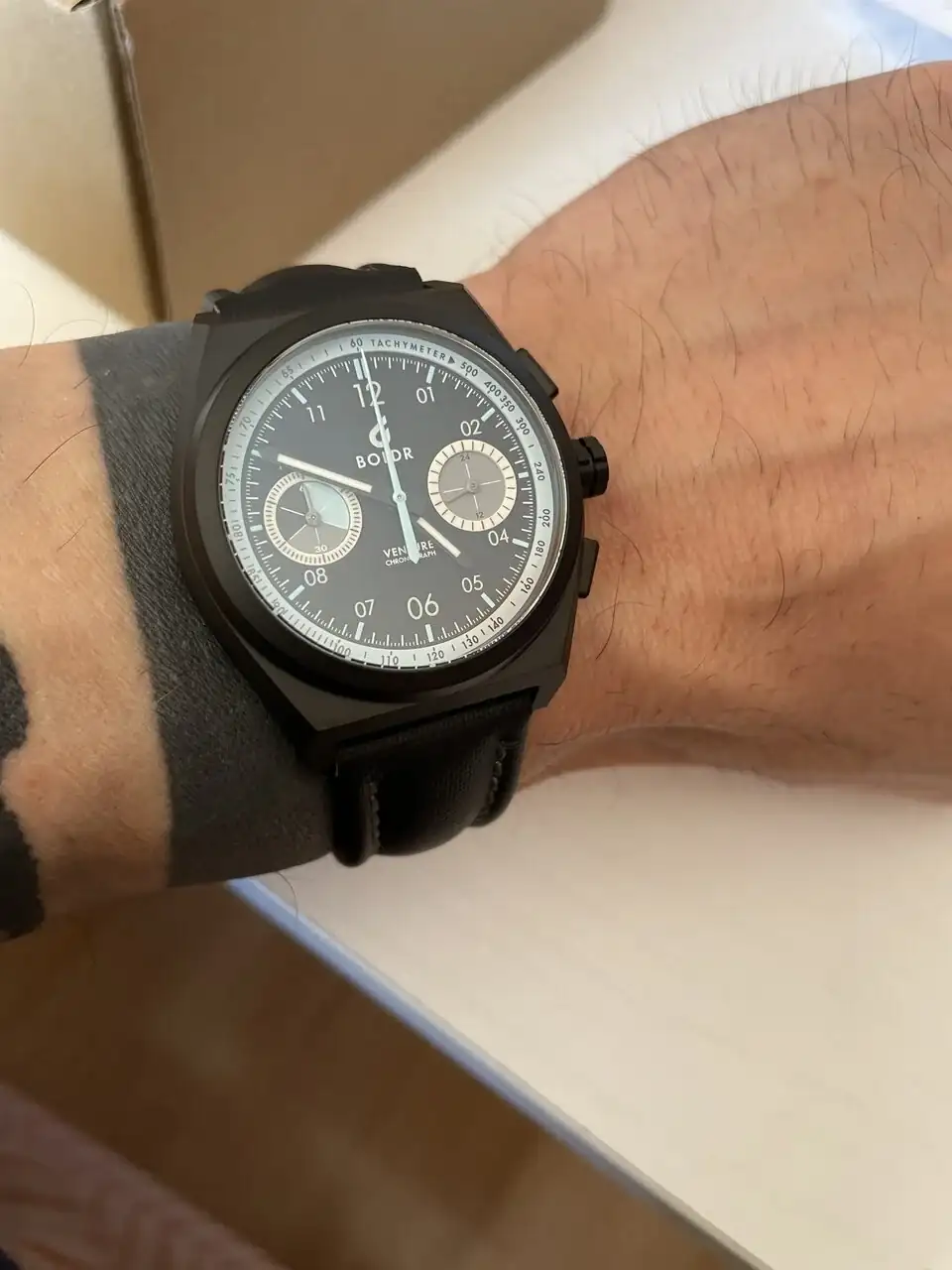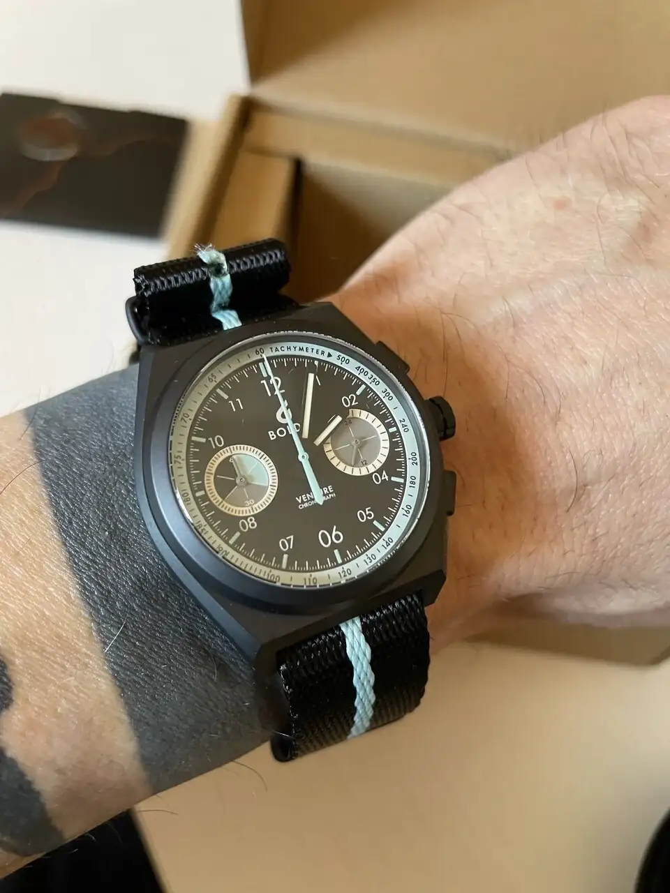 Culpa de las redes sociales, de hecho yo mismo abrí un hilo con una de las novedades, empecé a fijarme en esta marca Boldr y bastantes de vosotros comentasteis sus virtudes. Mire su catálogo y ahí estaba, justo lo que buscaba. El modelo Ventura Rally SRW, sus características :caja de titanio con recubrimiento pvd negro, cristal de zafiro con AR, movimiento mecaquarz Seiko vk64 bastante fiable y robusto, tamaño contenido 38mm con un lug to lug de 44mm, resistencia al agua de 200m con corona roscada y precioso lo hacían perfecto.