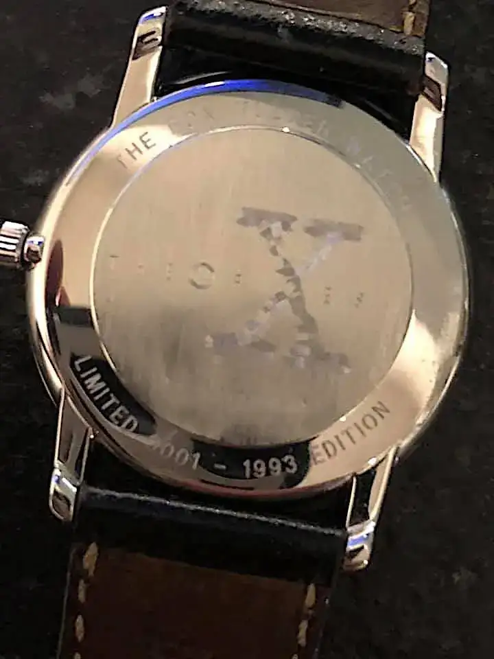 Viendo esta seríe de los 90s, el agente Mulder en el capítulo 15 de la temporada 6, sale con este reloj y en el video se observa claramente como el segundero va a saltos o sea, que es un movimiento de cuarzo. He buscado el reloj con la búsqueda por imágenes de Google y lo he encontrado solo con movimiento automático no cuarzo. Es claramente un Omega.