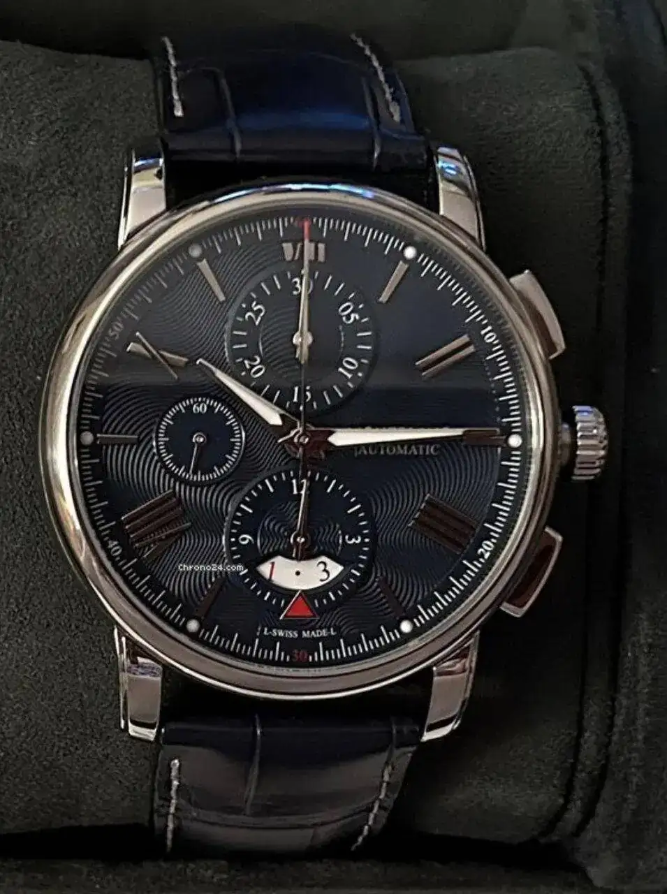 Fruto de un cambio con un "pirata" de Wallajungle (para recibir los suyos debi personarme en comisaria de PN y llamar desde alli para que los relojes pudieran ser enviados por fin). El cambio consistio en un Jacob and C⁰ que tuve anunciado en este foro y por el que un personaje, no diré nacionalidad, me ofreció varios relojes; un Hamilton Chrono Lord, un Hamilton Chrono Riva, un Baume et Mercier Capeland chrono y un Mido Multifort chrono. Finalmente obtuve los relojes y prefiero los mecanismos mecánicos a los de cuarzo.
